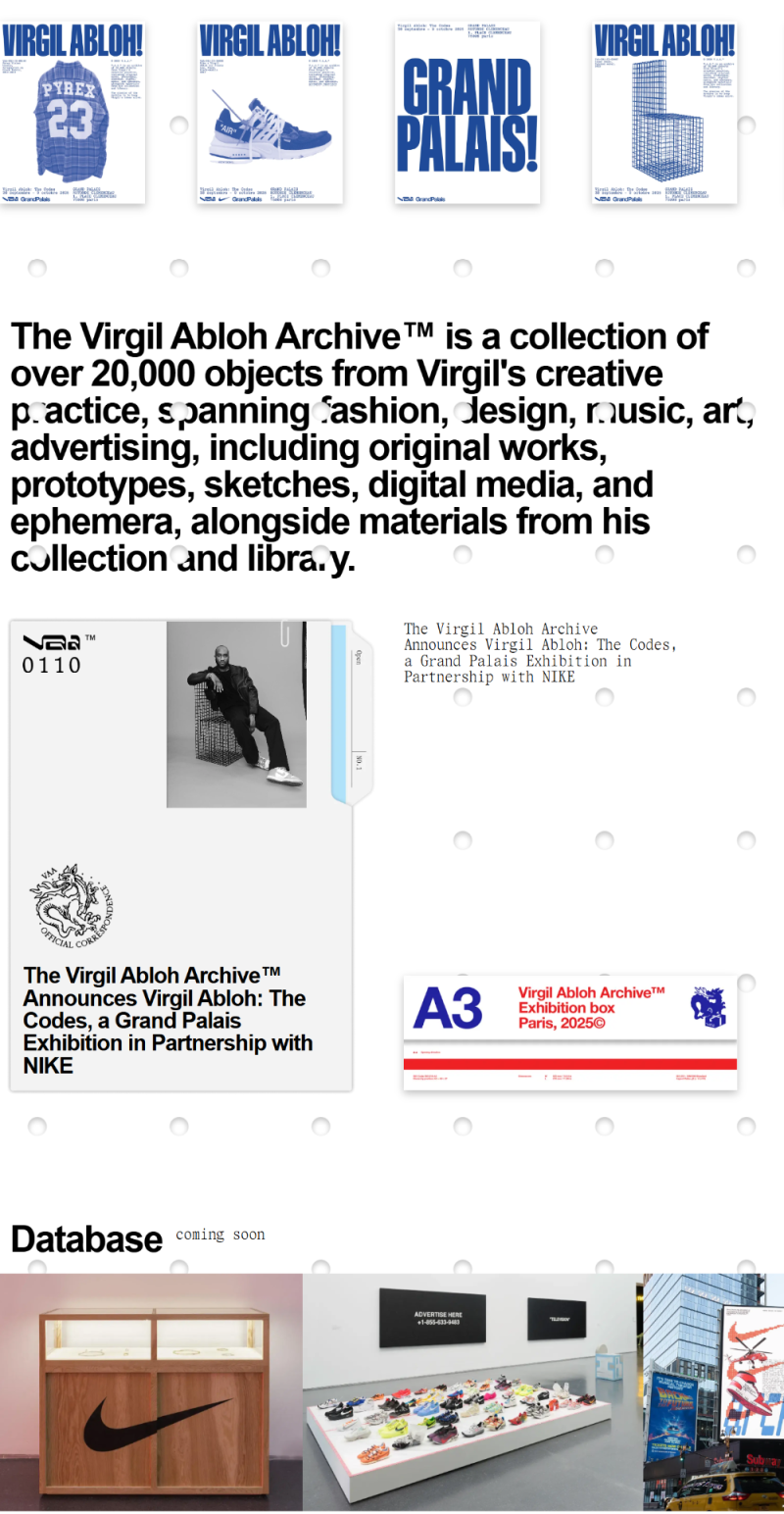 The Virgil Abloh Archive™ is a collection of over 20,000 objects from Virgil's creative practice, spanning fashion, design, music, art, advertising, including original works, prototypes, sketches, digital media, and ephemera, alongside materials from his collection and library.