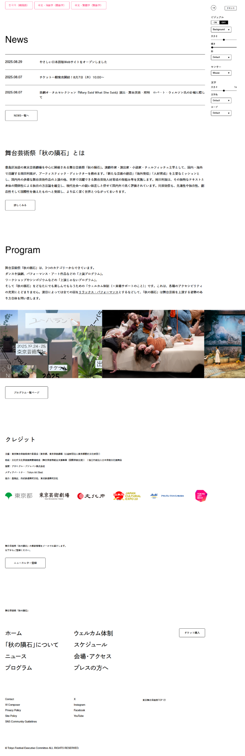 秋の隕石2025東京は、毎年秋に池袋の東京芸術劇場を中心に開催される国際的な舞台芸術祭。岡田利規ディレクションのもと、国内・海外の多様なパフォーミングアーツ作品(演劇・ダンス・音楽・インスタレーション等)の上演や関連企画を展開。