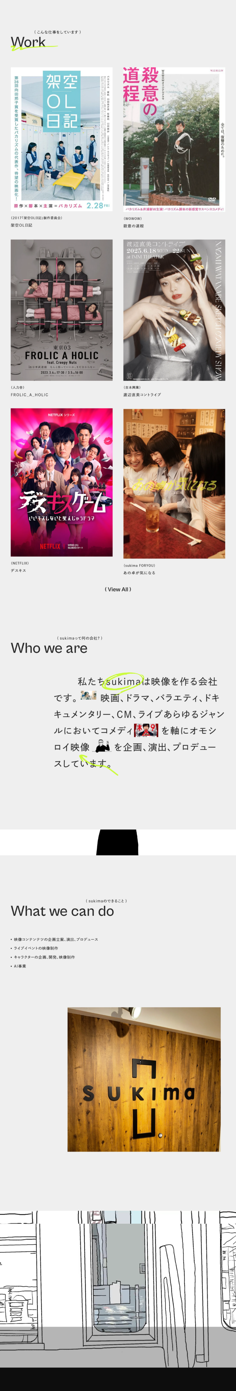 私たちsukimaは、映像を作る会社です。企画、演出、プロデュースを中心に映画やドラマ、バラエティ番組などを制作しています。あなたの人生の隙間に笑顔を届けるのが仕事です!
