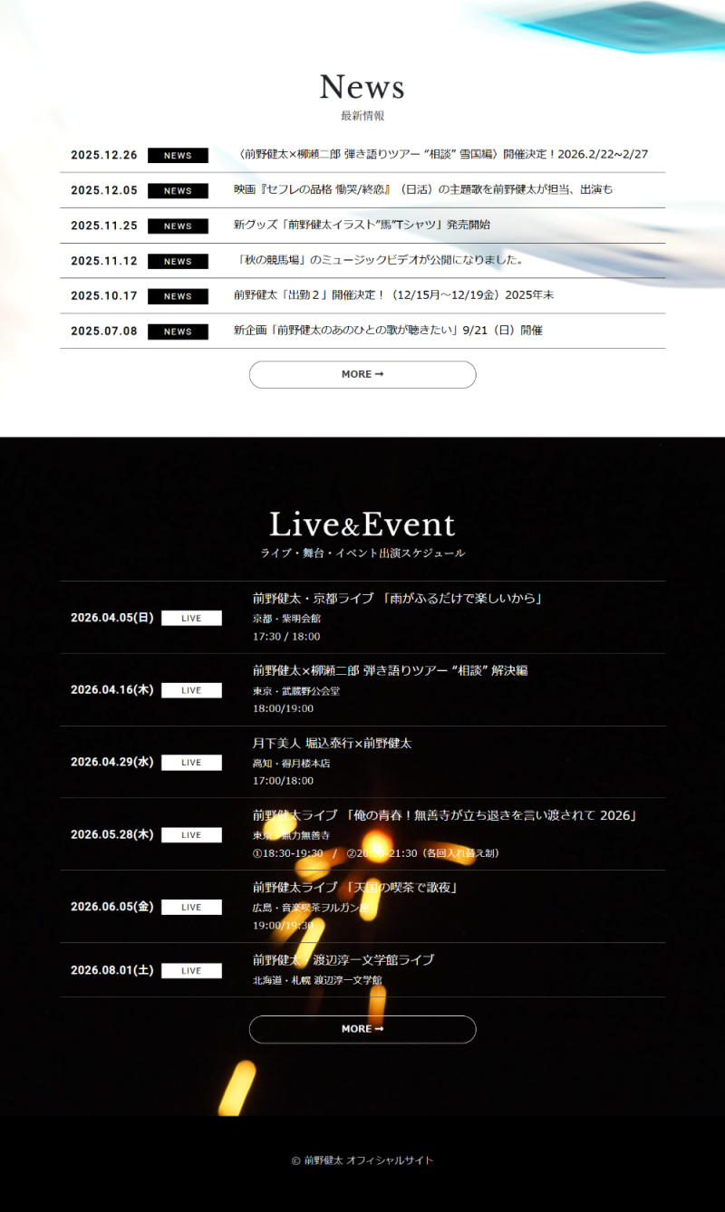 シンガーソングライター・俳優・エッセイスト、前野健太のTV・RADIO出演情報、ライヴ・イベント情報を随時お届けしています。プロフィールやディスコグラフィー、これまでの出演実績などもご覧頂けます。【プ