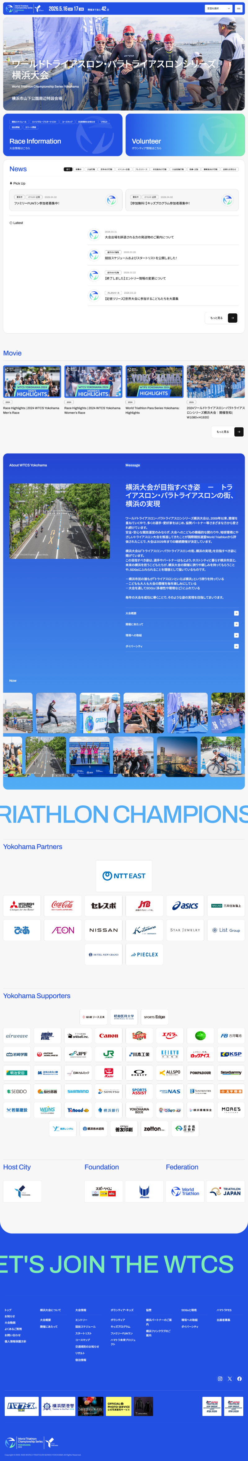 2026年5月16日(土)・17日(日)開催「ワールドトライアスロンチャンピオンシップシリーズ(2026/横浜)、ワールドトライアスロンパラシリーズ(2026/横浜)」のオフィシャルサイトです。