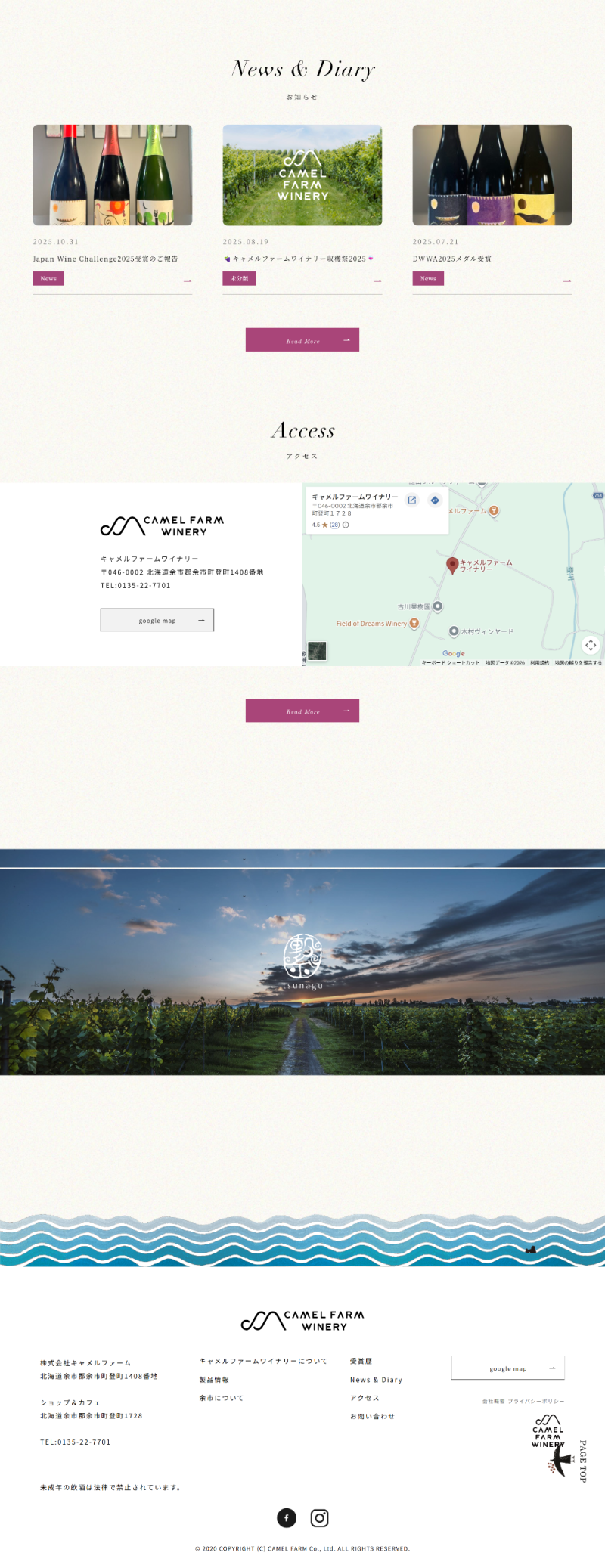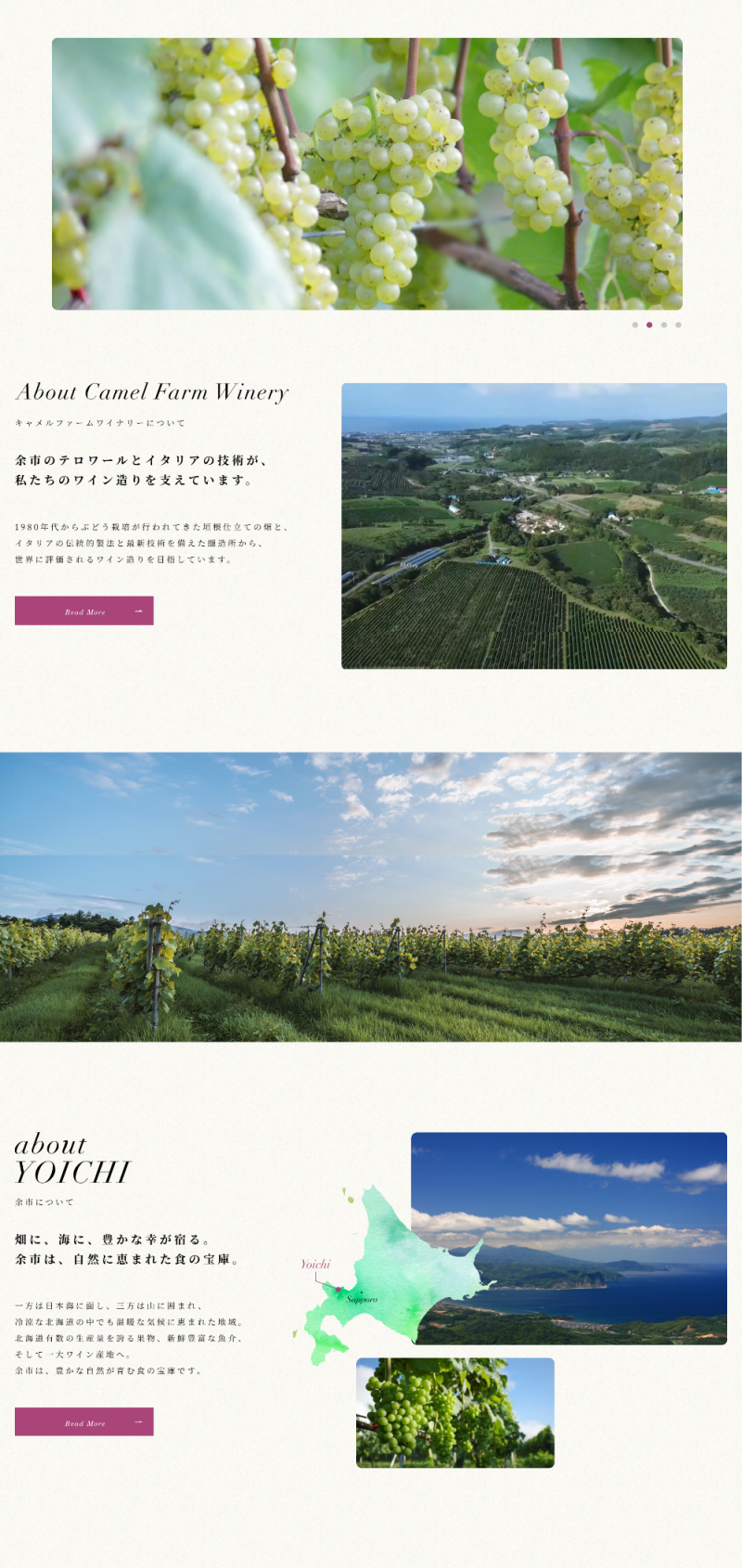 キャメルファーム ワイナリー公式サイト。One and Only in YOICHI .「この場所なら、世界に挑戦できる。」 なだらかな丘陵、海のみえる高台。 キャメルファーム ワイナリーは北海道余市から世界に評価されるワイン造りを目指しています。
