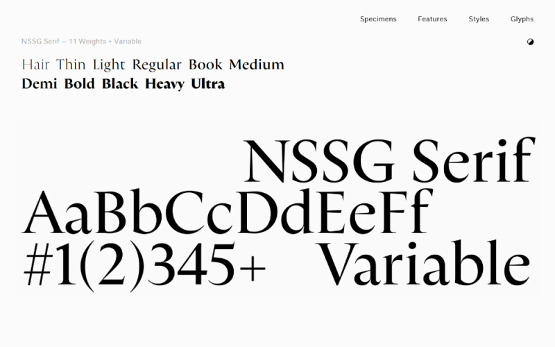 NSSG Serif is An original font of NSSG Inc. 11 Weights + Variable.