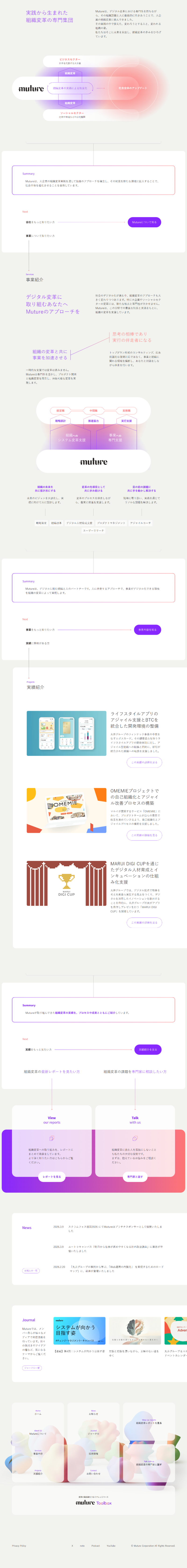 株式会社Muture(ミューチュア)は、大企業のデジタル変革と組織課題に伴走し、現場と人に向き合いながら変革を実現してきた会社です。実践から得た知見をもとに、変わろうとする人と変われる組織を支援し、未来をひらく組織変革に挑んでいます。