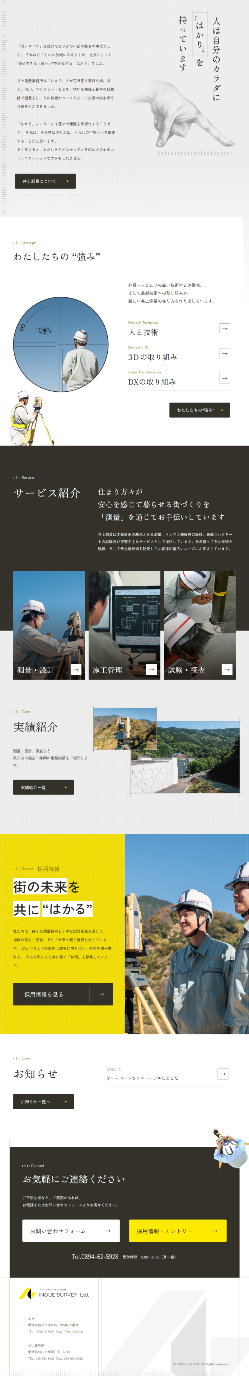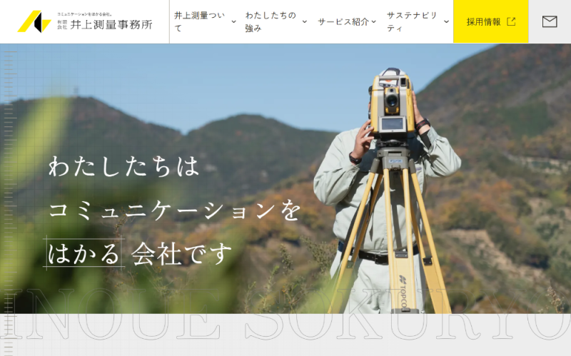 愛媛県西予市の有限会社井上測量事務所のコーポレートサイトです。最新技術の3D計測やDXを積極的に導入。測量、設計、施工管理を通じて、地域の社会基盤を支えています。
