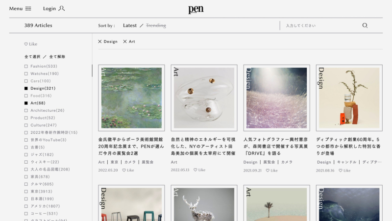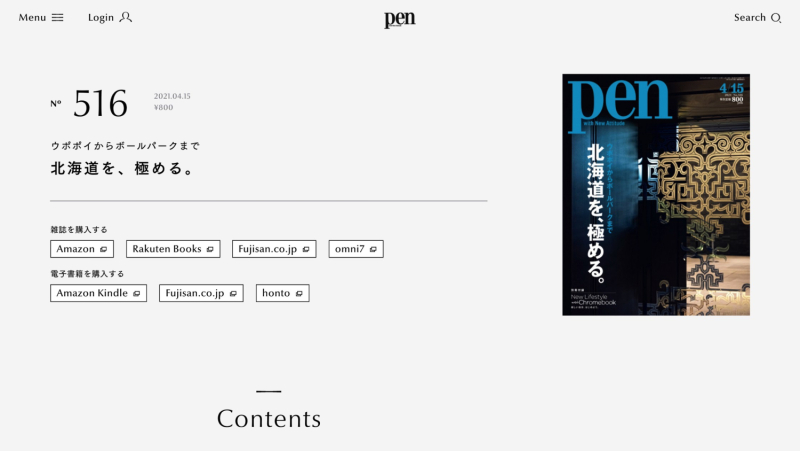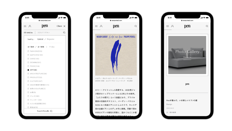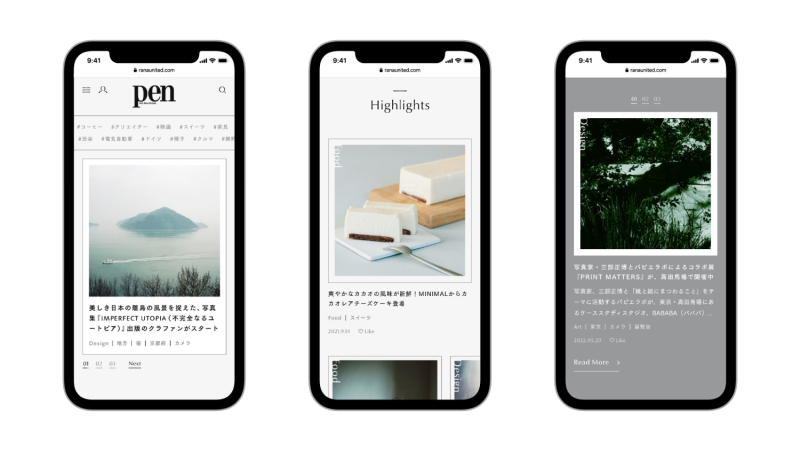 CCCメディアハウスが発行する雑誌『Pen』のWeb版「Pen Online」リニューアル事例。誌面の世界観を活かしたデザインと、情報図書館を目指したUI設計で、読者体験を向上させたRANA UNITEDのデザイン実績です。