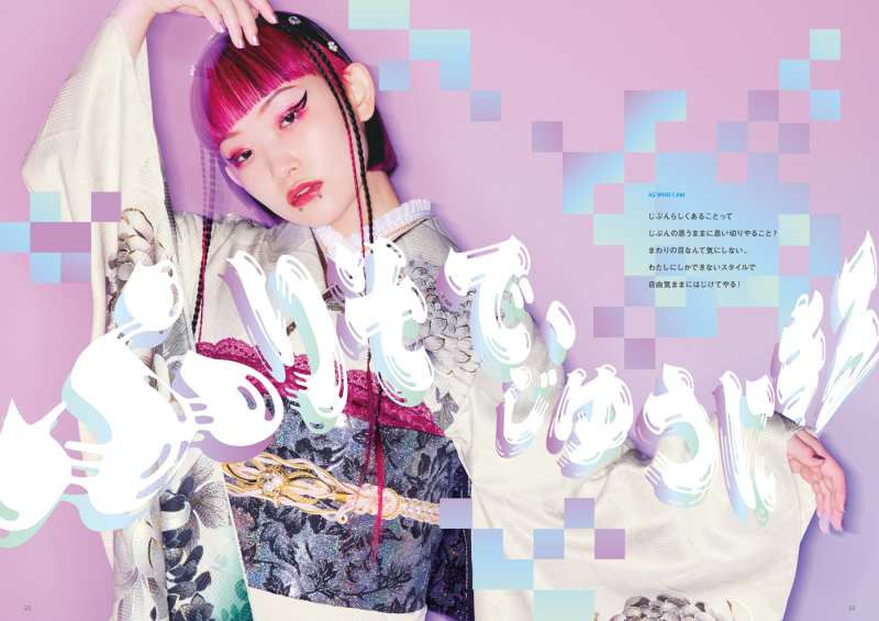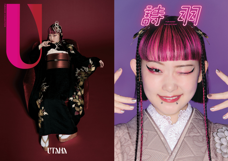 呉服メーカー様の新ブランドとして水曜日のカンパネラ「詩羽」を起用したコレクションを発表。そのオリジナル振袖「UTAHA」のブランドロゴとカタログを担当しました。時代のアイコンである彼女の非凡なる個性と着物の融合を意識してディレクション&デザイン。ポップとロックの世界観を両A面という形で仕上げています。