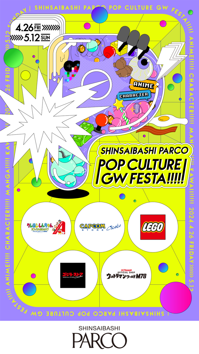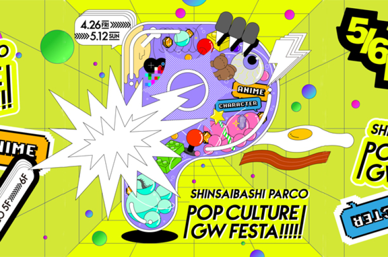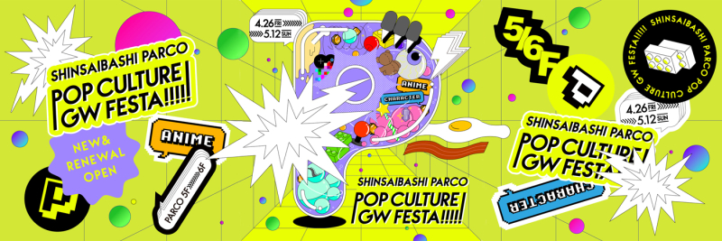 心斎橋パルコのゴールデンウィークイベント「POP CULTURE GW FESTA」。そのメインビジュアルと館内グラフィックを制作いたしました。イベントに合わせ5F、6Fポップカルチャーフロアが大きくリニューアル。令和ニューポップ!ハジける!カオス!をキーワードに仕上げています。