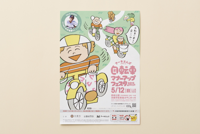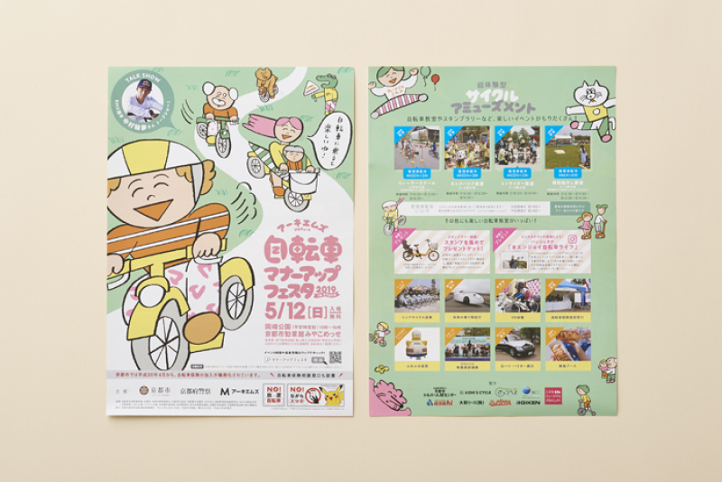 京都市では「自転車保険」の加入が義務化されました。それに伴い年に1度、子供たちに向けて自転車のルールやマナーを楽しく学べるイベントを開催。昨年に続き今回も弊社にてメインヴィジュアルを担当いたしました。