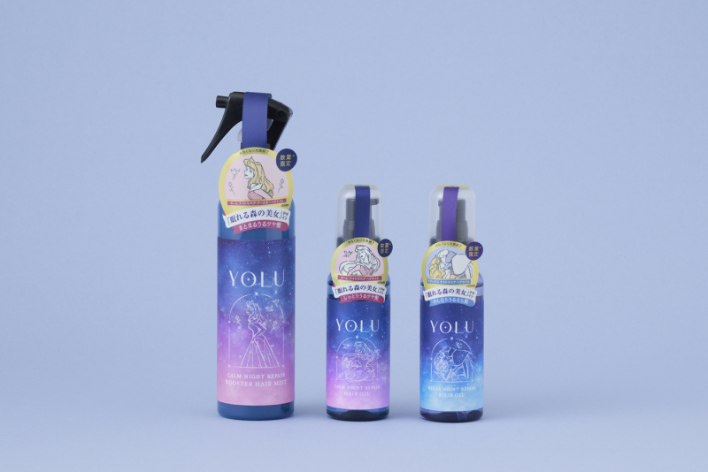 夜間美容シャンプー「YOLU」がディズニー映画[眠れる森の美女]とコラボレーション。その限定ラベル&パッケージ、タグをデザイン担当しました。原画をベースにオーロラ姫やマレフィセントを夜空に浮かぶ星座に見たて、儚くロマンチックな印象をもたらします。